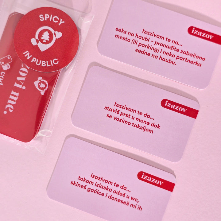 Ovaj set kombinira drinking game, izazove za javna mjesta i greb-greb poze – sve ơto vam treba za adrenalinsku, sexy avanturu!