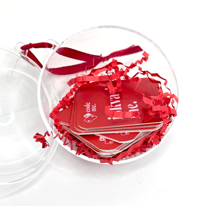 30 kartica s odvažnim, zimskim i novogodišnjim izazovima upakirano je u božićnu kuglu.